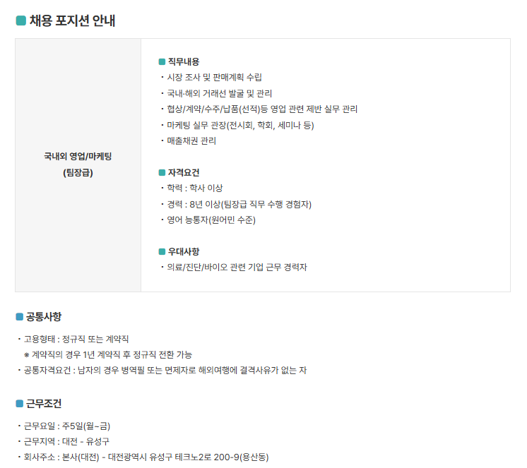 2025년 국내외 영업/마케팅(팀장급) 채용공고